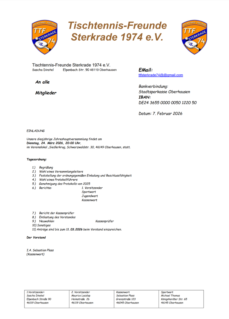 Am Freitag 20.02.26 spielen die 3. & 4. Mannschaft zu Hause, deshalb ist kein Training möglich.